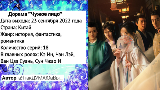 Я решила познакомиться с ранними проектами Чэн Лэя, поэтому сегодня расскажу о сериале "Чужое лицо". Обычная художница знакомится с дочерью первого министра, которая должна выйти замуж за благородного человека, но она его не любит. На самом деле у нее отношения с принцем. Дочь министра, использовав волшебство, меняет свое лицо на лицо художницы и обещает, что вернет все обратно, если главная героиня станет женой генерала вместо нее и поможет найти одну ценную вещь. Девушка согласилась, только потому что хочет спасти свою сестру...