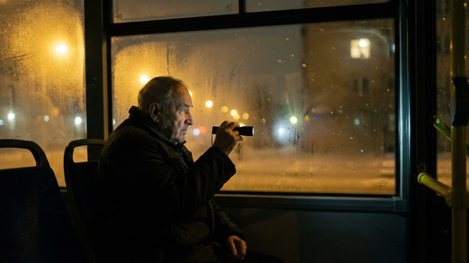 Каждую ночь он доставал фонарик. А потом я увидела, кто отвечает Тридцать восемь лет провожал жену на работу. Теперь может только из окна автобуса Маршрут сорок семь. Последний рейс. Один час пятнадцать ночи. Я вела автобус по пустым улицам и считала фонари. Семнадцать до поворота на Промышленную, потом ещё девять до завода, потом кольцо – и обратно в депо. Каждую ночь одно и то же. Пассажиров в это время почти не бывает. Иногда подсядет кто-нибудь с ночной смены, иногда парочка после бара. Но чаще – пусто...