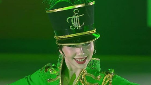 English. Под какую песню (как называется по-английски) Туктамышева выступала в зелёном костюме с музыкальными инструментами?