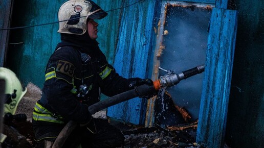 Пожарный фоторепортер показал кадры тушения дома в барнаульской Новомихайловке