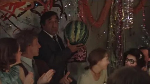 Вообще, глядя в различных, особенно современных лентах, как герои легко забрасывают в багажники набитые купюрами солидные спортивные сумки, только поражаешь лени создателей, не утруждающими себя такими, с их точки зрения, визуальными мелочами". Но, однажды, при просмотре программы, посвящённой славной картине Самсона Самсонова "Одиноким предоставляется общежитие", меня несколько удивил эпизод с принесённым на некое торжество героем роскошного Фрунзика Мкртчяна, весьма внушительного арбуза. Вот, в разгар "посиделок" в комнату заходит "наш знаменитый армянин" с могучим арбузом на плече...