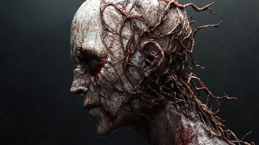 Создано на основе запроса: human horror movie character with mutations across time of organic materials, cinematic, detailed, ultra-realistic concept art , --- Автоперевод: Человеческий персонаж фильма ужасов с мутациями...
