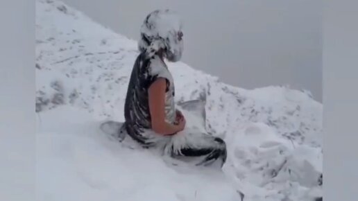 Невероятное видео показывает йога в глубокой медитации во время сильной метели
