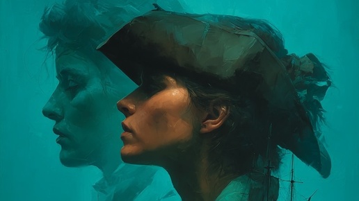 🌊 Пиратская драма в двойной экспозиции 🎨 Промт: Double exposure oil painting, dark fantasy style: dramatic scene of pirate ships at sea evoking tension before a battle blended with a commanding female pirate in a tricorne and detailed period costume superimposed in the foreground. A miniature ship floats mystically on the waters surface, merging realism and fantasy...