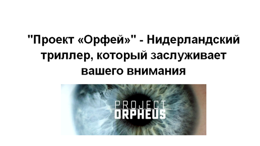 "Проект «Орфей»" - Нидерландский триллер, который заслуживает вашего внимания