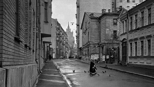 Приветствую вас на моём канале! Продолжаем наши фотопутешествия по городу сквозь время. Поехали! Барыковский переулок в 1965 и 2022 годах. Он расположен между Кропоткинской улицей, сейчас Пречистенкой и Метростроевской, ей в девяностых тоже вернули прежнее название - Остоженка. На старом фото бабушка пришла кормить голубей, видимо, она делала это постоянно здесь, потому что есть и другие фото. По правой стороне снесли первый дом и возвели новый, а третий реконструировали под элитное жильё. На горизонте возвышается одна из высоток...
