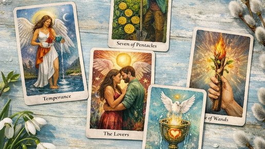 ✨Спасибо, что вы здесь, в этом уютном пространстве магии и вдохновения! 📥 Запись на личные расклады: MAX/WhatsApp/Telegram: +7 995 494 50 11 Девочки, расклад сегодня про сдвиг. Про ту самую точку, когда долго ничего не происходит — а потом бах, и жизнь меняет ритм. До конца марта у вас включается личный сценарий, который сначала покажется тихим, а потом резко ускорится. Ваши карты: Умеренность, Семёрка Пентаклей, Влюблённые. И уже по этой связке понятно — судьба не спешит, но готовит. Начнём с Умеренности...