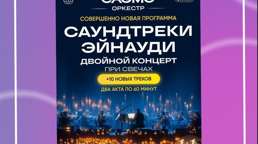 Саундтреки Эйнауди - Двойной концерт при свечах✨ В основе совершенно новой программы CAGMO оркестра лежит творчество композитора Людовико Эйнауди. Музыканты представляют новые версии произведений, которые были высоко оценены самим создателем-вдохновителем. Программа исполняется...