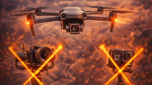 Дрон действительно открывает новые возможности съёмки. Воздушные кадры добавляют масштаба и динамики. Однако он не может заменить наземную работу. Гимбал обеспечивает плавную съёмку на уровне глаз, что важно для повествования и работы с героями. Экшн-камера позволяет снимать в сложных условиях, где полёт невозможен...