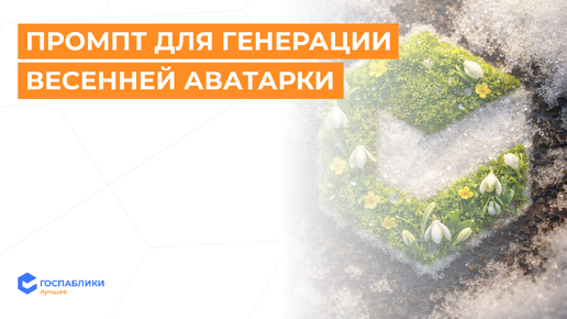 Сам промпт: Использовать загруженный логотип как основной референс, полностью сохранить его форму, пропорции, читаемость и ключевые элементы дизайна. Крупный план, вид сверху — логотип органично интегрирован в природную сцену и как будто проступает из-под тающего зернистого снега на тёмной влажной земле. Логотип сформирован из природных материалов: ярко-зелёный мох, мелкие цветы и белые подснежники точно повторяют форму логотипа, аккуратно выложены по контуру и внутри, без искажения оригинального дизайна...