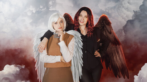 Как я говорила ранее, мне очень повезло, что моя младшая сестрёнка разделяет многие мои увлечения. Косплей не стал исключением, и именно она как-то раз толкнула меня на очередную авантюру. Нам обоим до ужаса нравится сериал "Благие знамения". Я даже в кои-то веки посмотрела его в месяц выхода, не растягивая на долгие годы. Естественно, частичка нашей любви распространилась и на самих персонажей, которые невероятно харизматичны. Именно тогда сестре пришло в голову сделать закос под этих двух ребят...