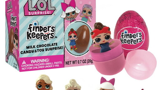 Finders Keepers: L.O.L SURPRISE!™ Eggs L.O.L. Surprise Finders Keepers - это две радости в одном! Если вы хотите расширить свою коллекцию кукол ЛОЛ сюрприз, смешивать и сочетать аксессуары, теперь это можно сделать в увлекательной игровой форме с наборами L.O.L. Surprise Finders Keepers, которые скрывают куклу внутри яйца из молочного шоколада. Эти специальные коллекционные игрушки напоминают привычные варианты упаковок L. O. L. Surprise, но на этот раз со съедобным компонентом — в этом смысле...