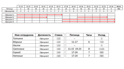 Расчёт потребности в сотрудниках. Эффективный график выхода официантов.