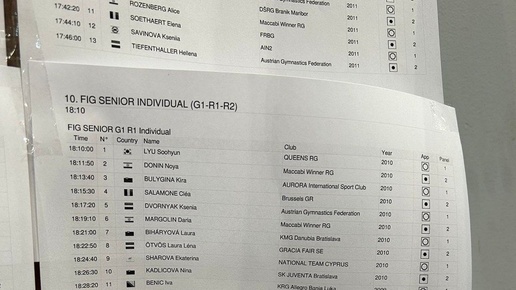 Стартовые протоколы на 20 февраля (пятница) на Международный турнир FIG 32ой Gracia Fair Cup