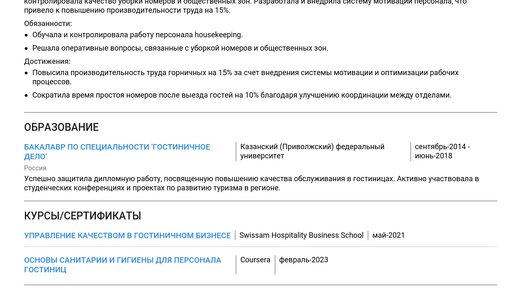 Пример резюме housekeeping-менеджера 2025 - Как составить