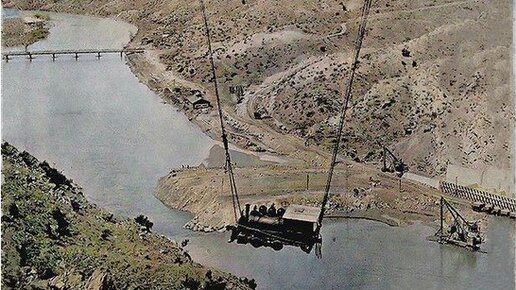 Интернет, как обычно, путается в показаниях и датирует изображение различными годами в промежутке от 1915 до 1930 года. Мы взвесили на редакционных весах авторитет всех источников, и перевесили эксперты, которые называют 1915-й. Мы с ними согласны. А вот с чем нет никаких исторических разночтений, так это с местом ситуации и самой ситуацией. Перед тобой фотоснимок переправы парового локомотива через каньон реки Рио-Гранде на канатах в американском штате Нью-Мексико. Вес паровоза — примерно 20 тонн...