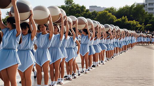 Приятного просмотра... На фото запечатлен массовый спортивно-художественный праздник, популярный в СССР формат «живых картин» или физкультурных парадов. Безукладников, переехавший в Москву в 1986 году, умел находить необычные ракурсы в привычных советских реалиях. В этой работе он мастерски использует ритм и перспективу, превращая официальное мероприятие в сюрреалистическую и эстетически выверенную композицию...