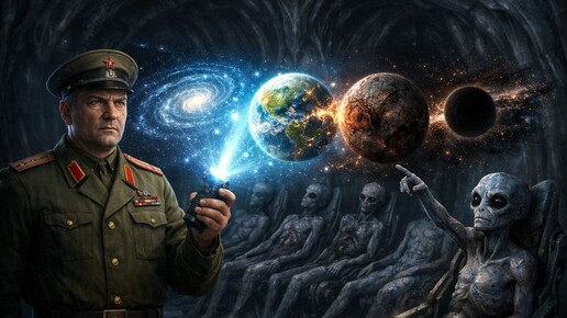 Существа. Шесть существ в креслах. Рост — около180–190 сантиметров. Сложение худощавое, почти хрупкое. Но пропорции — неправильные. Руки слишком длинные, доходили до колен. Ноги, наоборот, короче, чем у человека. Торс — удлинённый, узкий. Головы — округлые, чуть крупнее человеческих. Без волос, гладкие, серые. Лица, если это можно назвать лицами: глаза огромные, миндалевидные, занимают треть головы. Тёмные, почти чёрные, без белков, без зрачков — как два провала в бездну. Нос почти отсутствует — только две маленькие щели-ноздри...