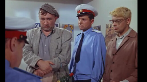Страна: СССР Жанр: комедия Год выпуска: 1965 Продолжительность: 01:34:34 Режиссер: Леонид Гайдай В ролях: Александр Демьяненко, Наталья Селезнёва, Алексей Смирнов, Юрий Никулин, Евгений Моргунов, Георгий Вицин, Михаил Пуговкин, Виктор Павлов, Владимир Басов, Рина Зеленая. Итак приступим... В автобусе мы видим беременную девушку, которая чувствует себя достаточно хорошо, раз читая на ходу книгу, отказывается от предоставленного бабушкой места. Но народ решительно настроен её усадить на сидячее место, выбрав жертвой самую асоциальную личность - алкоголика с сеткой бутылок...