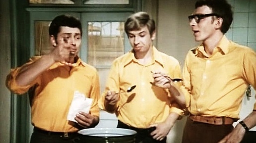 30 декабря 1973 года состоялась премьера телевизионного художественного фильма «Жили три холостяка». В основе сценария этой комедии лежит современный водевиль Владимира Дыховичного «Свадебное путешествие». Двухсерийный музыкальный фильм снят по заказу «Гостелерадио». Комедию снимали специально для праздничной новогодней программы и планировали показать вечером 31 декабря. Но в последний момент демонстрацию этой картины поменяли местами с праздничным выпуском «Кабачка 13 стульев». «Кабачок» показали в семь вечера 31 декабря, а «Жили три холостяка», соответственно, вечером 30-го...