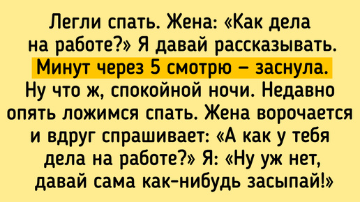 Супружеская жизнь — это настоящее испытание на прочность. Но с другой стороны, истории, которые приключаются в семье, расцвечивают будничное существование яркими красками. А кое-кто не только проживает такие моменты, но еще и делится ими с другими в сети, чтобы и мы повеселились. Жена держит хвостик рулетки, я говорю: «Ну, сколько там?». Она неуверенно смотрит на меня, на рулетку, снова на меня и отвечает: «Ну... Ноль!». Я говорю: «Логично... А у меня тогда сколько?». Посмеялись — проверку ремонтом брак прошёл...