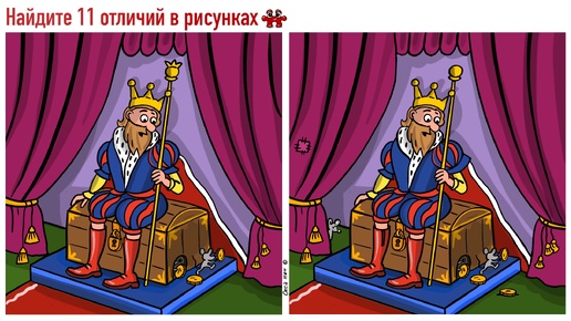 11 отличий на картинках про скупого короля. Позитив, юмор и польза для ума. Тренировка памяти и внимания