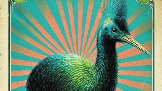Создано на основе запроса: Creative product poster, art deco 1920s, advertisement poster featuring a kiwi bird with a crest like a rooster --- Автоперевод: Плакат с творческим продуктом, Art Deco 1920...