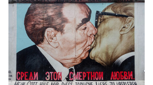 Граффити на Берлинской стене "Поцелуй Брежнева и Хоннекера"