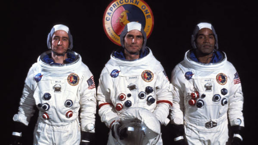 Козерог–один / Capricorn One. США–Великобритания, 1977. Режиссёр и сценарист Питер Хайамс. Актеры: Эллиот Гулд, Джеймс Бролин, Бренда Ваккаро, Сэм Уотерстон, О Джей Симпсон, Хэл Холбрук, Карен Блэк, Телли Савалас и др. В СССР – с 15 августа 1980. 24,2 млн. зрителей за первый год демонстрации. Режиссёр Питер Хайамс снимает фильмы с начала 1970-х. На его счету такие заметные остросюжетные картины, как «Козерог-1», «Ганновер-стрит», «Охотник», «Звёздная палата», «Космическая одиссея 2010», «Удивительные...