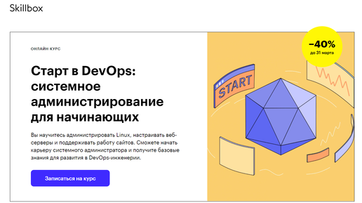 Приветствую. Сегодня я вам хочу рассказать об основных курсах по DeVops. Это мой личный список платных и бесплатных курсов. В этой статье, как и в предыдущих сперва будут платные курсы, а затем бесплатные курсы и интенсивы по Development Operation Skillbox - Профессия DeVops-инженер Ссылка на курс Стоимость: 82 495₽ / 3 750 ₽/мес(в рассрочку без процентов) Формат: в курсе практические видеоуроки. Курс подойдёт IT специалистам Продолжительность: 12 месяцев, около 4х часов в неделю (60 модулей,...