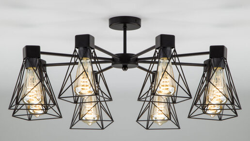 В коллекции представлены три модели светильников - потолочные на 5 и 8 ламп и настенный. Каркас светильников изготовлен из металла матового черного цвета. Особенно эффектно и ярко светильники коллекции Trappola смотрятся в сочетании с Лампами Эдинсона (как на фото ниже). Люстра в стиле лофт Trappola на 8, как и модель на 5 ламп, способна стать основным источником света в помещении площадью от 10 до 23 кв.м. Люстра поддерживает установку диммера для регулирования яркости ламп, за счет чего данная модель подойдет даже в небольшие комнаты...