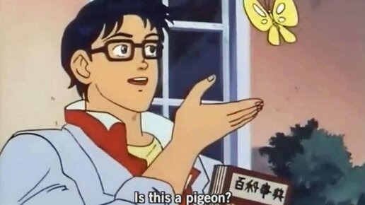 На популярной картинке изображён парень, который показывает на бабочку и спрашивает: "Это голубь?" Эта иллюстрация стала способом выражения замешательства и дезориентации. Истоки мема уходят корнями далеко в прошлое. Первоначально мемом стал скриншот из аниме Brave of the Sun Fighbird 1991 года, где в переводе на английский звучал вопрос про голубя — дело было в 2011 году. Картинку использовали для привлечения внимания к чему-то нелогичному в диалоге. Но благодаря твиту пользователя под ником Free Palestine мем снова стал вирусным в Интернете уже в 2018-м...