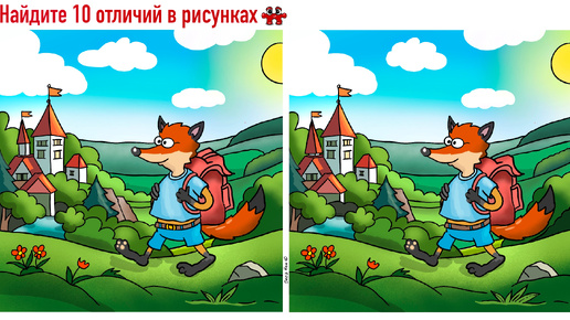 10 отличий на картинках про лиса-путешественника. Задание на внимательность и упражнение для памяти.