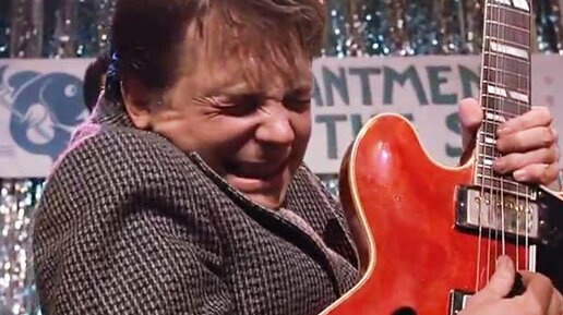 В популярном фильме 1985 года Назад в будущее школьник из 80-х Марти Макфлай, которого играет Майкл Дж. Фокс, попадает в прошлое и играет на гитаре на школьных танцах...