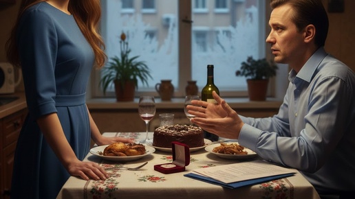 За окном пятого этажа старой московской панельки догорал февральский закат, окрашивая сугробы в цвет несвежего зефира. Марина стояла у окна, прижавшись лбом к холодному стеклу. На кухне было душно от аромата запеченной курицы с чесноком — праздничный ужин, который должен был стать началом новой жизни, внезапно превратился в поминальную трапезу по её надеждам. На столе, покрытом накрахмаленной льняной скатертью (наследство от бабушки), стояли две тарелки и нераспечатанная бутылка вина. А посреди этой идиллии, словно тяжелый булыжник, лежал ультиматум...