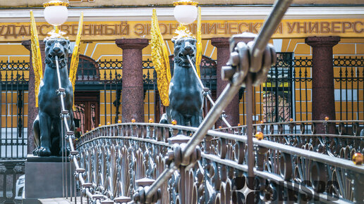 На фотографиях Банковский мост. Это, кстати, последний из трех сохранившихся пешеходных цепных (то есть подвесных) мостов в Санкт-Петербурге. Про Львиный мост мы уже писали, а про уникальный Почтамтский скоро напишем (ставьте лайк и подписывайтесь, чтобы не пропустить). Итак, Банковский мост. Строить его начали одновременно с Львиным мостиком. Проект разрабатывали те же инженеры, поэтому, повторятся не буду. С одной стороны моста находится Казанский собор, а с другой Государственный ассигнационный банк 🏛, его-то золотые запасы и охраняют грифоны...