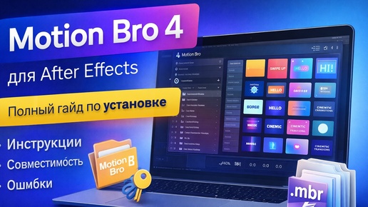 Motion Bro 4 — один из самых популярных инструментов для ускорения работы в After Effects. Он добавляет удобную панель с готовыми анимациями, переходами, текстовыми эффектами и элементами интерфейса, которые можно применять в пару кликов без ручной анимации. В этой статье разберём: Motion Bro 4 — это расширение (панель) для Adobe After Effects.