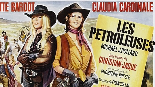 Нефтедобытчицы / Les Pétroleuses. Франция-Италия-Испания-Великобритания, 1971. Режиссер Кристиан-Жак. Режиссеры: Кристиан-Жак, Ги Казариль. Сценаристы: Мари-Анг Аньес, Даниель Буланже, Ги Казариль. Актеры: Брижит Бардо, Клаудия Кардинале, Майкл Джей Поллард, Жорж Беллер, Крис Уэрта, Патрик Прежан, Ги Казариль, Мишлин Прель, Валерий Инкижинов и др. Комедийный вестерн. Премьера: 16.12.1971. Прокат во Франции: 2,2 млн. зрителей. Прокат в Испании: 1,6 млн. зрителей. 1880 год, Нью-Мексико. Две красавицы...