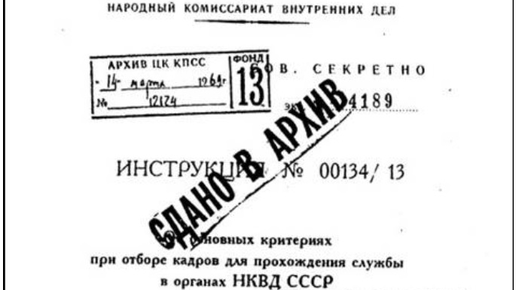 ИНСТРУКЦИЯ ОБ ОСНОВНЫХ КРИТЕРИЯХ ПРИ ОТБОРЕ КАДРОВ В НКВД СССР, 1938 года, N00134/13