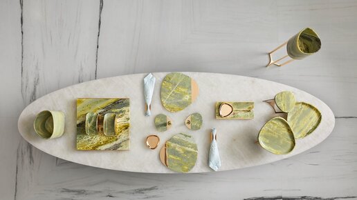 Компания Antolini, известная своими экзотическими камнями, вошла в сферу дизайна продуктов по случаю Миланской недели дизайна 2022 года и создала свою первую коллекцию посуды под названием «The Gaze Beyond» вместе с дизайнером Алессандро Ла Спада. Подробности объясняются в следующем пресс-релизе :
