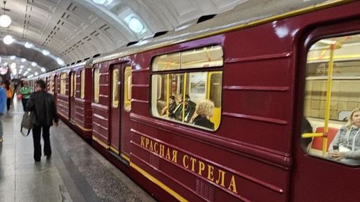 Дорогие читатели, рада приветствовать вас на канале Лидии. Сегодня я ехала в метро в поезде посвящённом "Красной стреле". Надо отметить, что в московском метрополитене именных поездов много: поезд-галерея "Акварель" с репродукциями картин Сергея Андрияки, ретропоезд "Сокольники", стилизованный под первый поезд московского метрополитена, поезд Победы, который знакомит пассажиров с городами-героями России, "Новогодний" поезд. Состав из семи вагонов, в котором я ехала, появился в московском метро в честь 75-летия поезда "Красная стрела"...