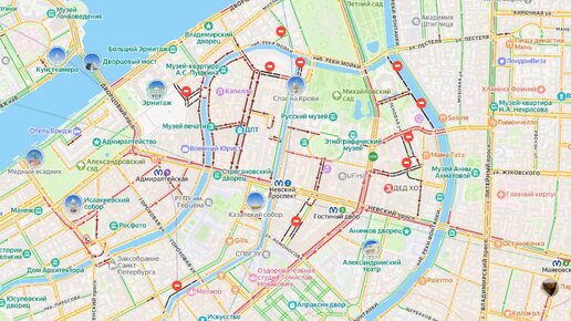 К вечеру 3 января в центре Петербурга образовались пробки, отмеченные на картах желтыми и красными цветами. По данным Яндекс.Карт, пробки в городе в целом оцениваются в 3 балла — это выше обычного уровня для этого времени суток, когда средний показатель составляет 2 балла. Наиболее интенсивные скопления транспорта наблюдаются на Невском проспекте, Большой Конюшенной улице, набережной реки Мойки, Садовой улице и в окрестностях Исаакиевского собора. В то же время в остальных районах города ситуация остается относительно спокойной...