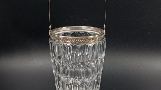 _____ Оригинал. В наличии в Москве. Италия. Флоренция. 1934-1944 гг. Элегантное антикварное ведро для льда из гранёного хрусталя с оправой и ручкой из серебра 800 пробы. Огранка придаёт изделию изысканный блеск и декоративность. Серебряная окантовка украшена ажурным рельефным орнаментом. Традиционно такие ведёрки используются для подачи льда к шампанскому или другим напиткам. Также может служить декоративным элементом интерьера или использоваться в качестве конфетницы/бисквитницы. Характеристики: ■ Категория: Антиквариат; ■ Период производства: 1934-1944 гг...