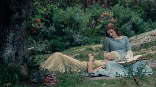 Кто и как воспитывал Рейниру и Алисенту? Попробуем разобраться. В первое появление принцессы на экране мы видим её летящей на драконе и лихо спрыгнувшей с него при приземлении так, что даже начальник стражи схватился за сердце. Далее она навещает беременную мать и искренне беспокоится о её здоровье, обмолвившись, что никому другому больше до этого нет дела. После этого Рейнира гуляет в саду со своей компаньонкой, делает вид, что книги - это скукота, однако, без запинки выдает правильный ответ по истории государства...