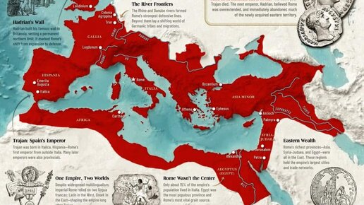 У Рима была привычка, которая делала его почти непобедимым: он не просто захватывал землю — он превращал её в работающую систему. Дороги, налоги, гарнизоны, право, города, торговля. Но даже у такой машины есть предел. И у Римской империи он наступил вполне конкретно — не «где-то в древности», а в определённые годы, при конкретном человеке. Наибольших территориальных размеров Римская империя достигла при императоре Траян — на рубеже 116–117 годов н.э. Часто в качестве «официальной точки» называют 117 год: именно тогда карта выглядит максимально широкой...