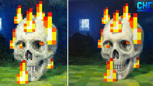 Каждый игрок Minecraft знает, пожалуй, одну из самых известных картин в игре — картину "Skull on fire". Творение художника Кристофера Зеттерстранда притягивает к себе внимание своей красотой и загадочностью. На ней изображён череп, полыхающий пиксельным пламенем, который располагается на фоне некоего пейзажа. Именно об этом пейзаже пойдет речь в данном посте. Что это? Обыкновенная выдумка художника или же реальный мир, сгенерированный в игре?