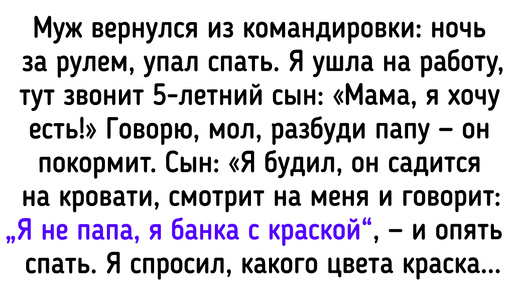У этих людей семейная жизнь проходит под девизом «Не заскучаешь». То жена скрывает свои кулинарные огрехи, то муж спросонья выкидывает такие кренделя, что впору анекдоты рассказывать. Заглядывайте в нашу подборку и поднимите себе настроение. Моя девушка суеверная. Как-то раз я пригласил ее погулять, на что ответом было твердое «нет». Это она объяснила так: «Я чувствую, что сегодня вечером произойдет что-то ужасное». «И что в этом такого?» — спросите вы. Все бы ничего, но в тот день я хотел сделать ей предложение...