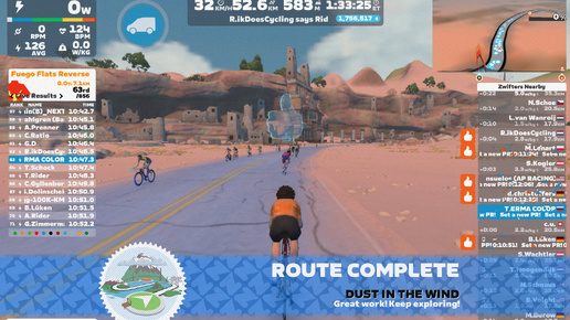 Сегодня в качестве новой тренировочной трассы я выбрал "Dust in the Wind" протяжённостью 52.1 км с набором высоты (как обычно по вертикали) 582 метра. На прохождение трассы ушло немного более 1,5 часов. Темп при этом был средний, без вынимания души из тела :) Просто двигался вперёд в своё удовольствие. Скорость и каденс старался поддерживать на определëнном уровне, для поддержания ритма. На ровных участках отдыхал, в гору ускорялся. Трасса заточена для спортсменов широкого профиля, для универсалов...