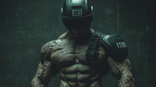 Создано на основе запроса: allegory of masculinity and modernism in a battle / ripped man in a futuristic cop uniform with helmet / atmospheric / dark / grainy / gritty / imposing / intense / intimidating / menacing --- Автоперевод: Аллегория мужественности и модернизма в битве...