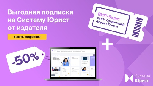 ВИП-версия Системы Юрист на год по цене от издателя и ВИП-билет на Юридический Форум в Кремле ⚡ Коллеги, до конца недели вы можете оформить подписку на Систему Юрист со скидкой 50% и сохраните более 700 000 рублей в год: ⁃ на правовой базе и судебной практике; ⁃ обучении; ⁃ подписке журналов. ↖️ Оставьте заявку по ссылке, менеджер перезвонит в течение дня...